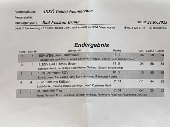 D'Eisbären Grafenbach siegen vor dem ESV Schlöglmühl und dem WSV Traisen